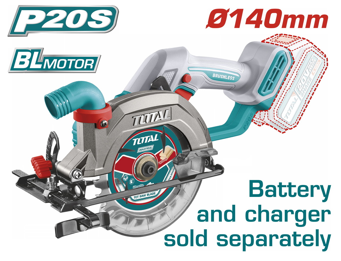 TOTAL ΕΠΑΓΓ. ΔΙΣΚΟΠΡΙΟΝΟ ΜΠΑΤ. Φ-140mm Li-ion 20V ΧΩΡΙΣ ΜΠΑΤΑΡΙΑ & ΦΟΡΤΙΣΤΗ (TSLI1402) - Image 1
