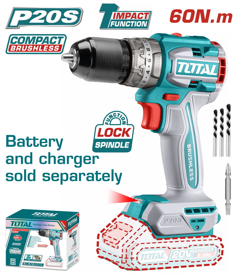 TOTAL ΕΠΑΓΓ. ΔΡΑΠΑΝΟΚΑΤΣΑΒΙΔΟ ΚΡΟΥΣΤΙΚΟ ΜΠΑΤ. Li-ion 20V/60Nm BL Motor ΧΩΡΙΣ ΜΠΑΤ & ΦΟΡΤΙΣΤΗ (TIDLI206021)