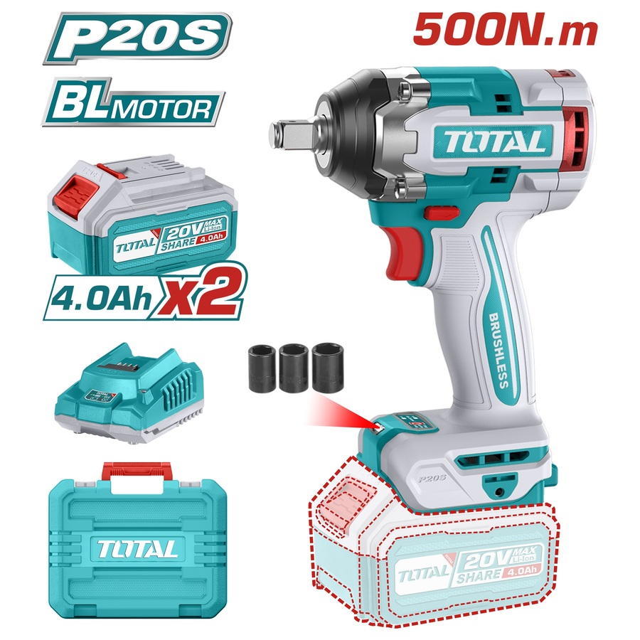 TOTAL ΕΠΑΓΓ. ΜΠΟΥΛΟΝΟΚΛΕΙΔΟ ΜΠΑΤ. Li-ion 20V / 4Ah / 500Nm / 2 ΜΠΑΤΑΡΙΕΣ (TIWLI2050)